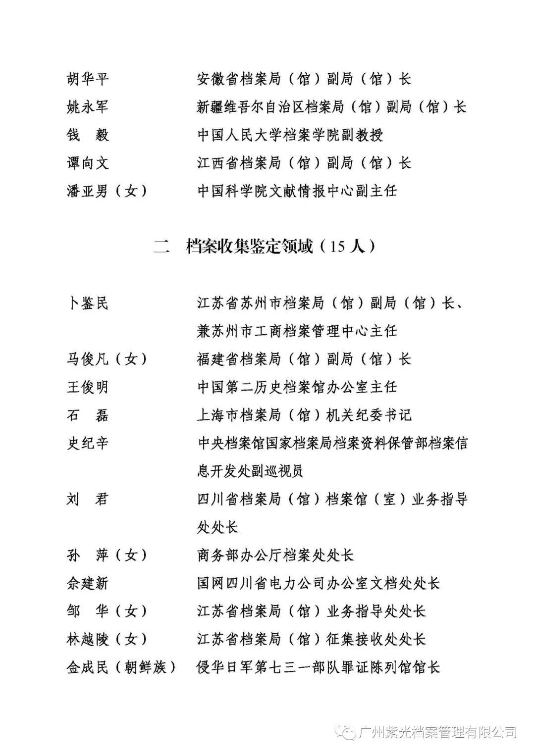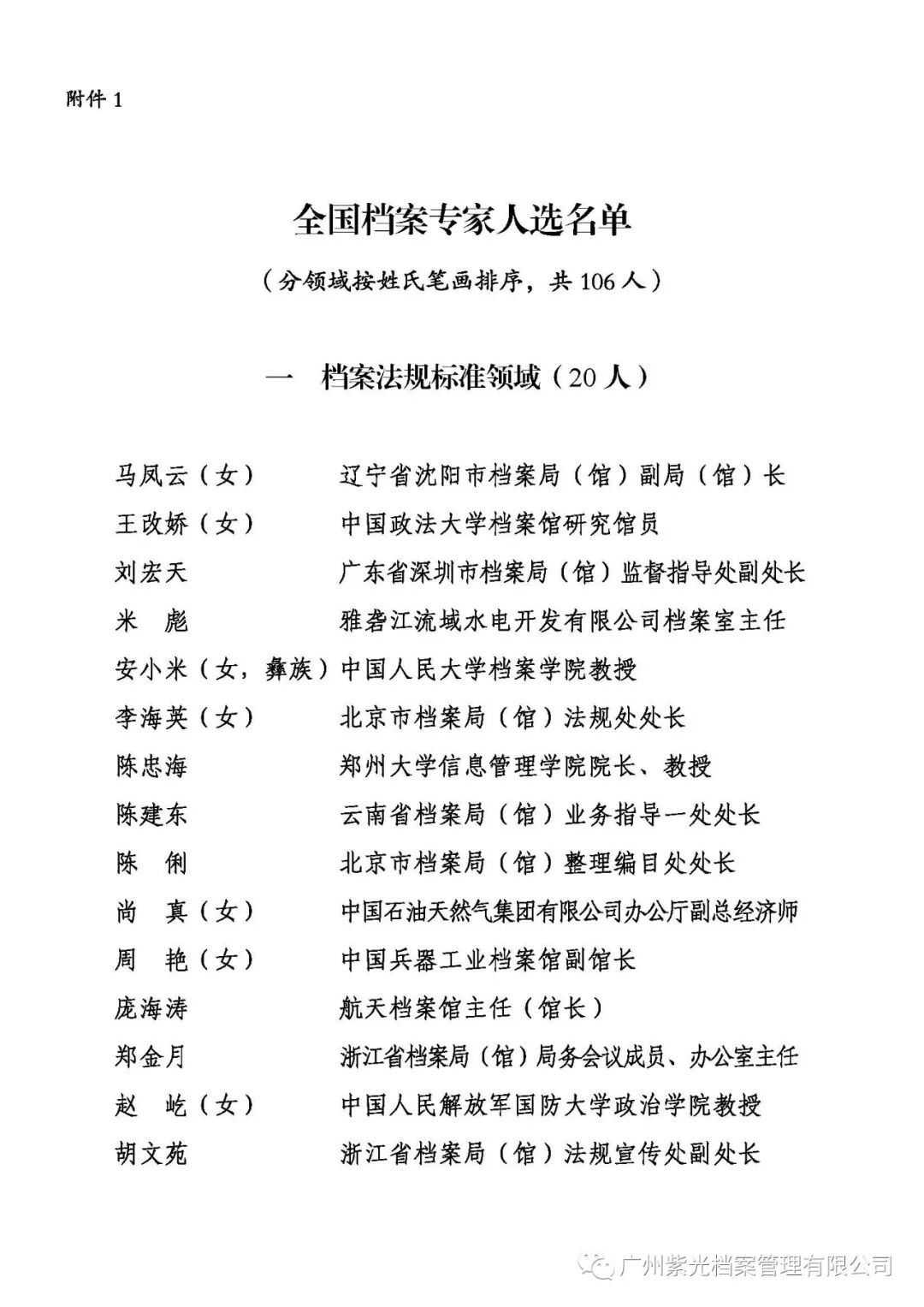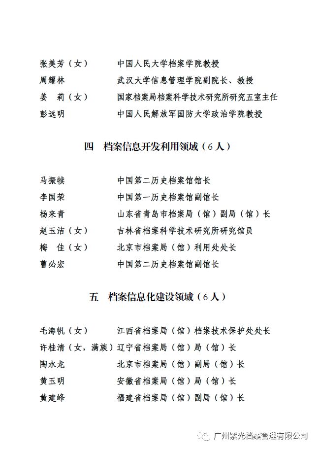 1. 全国档案专家人选名单