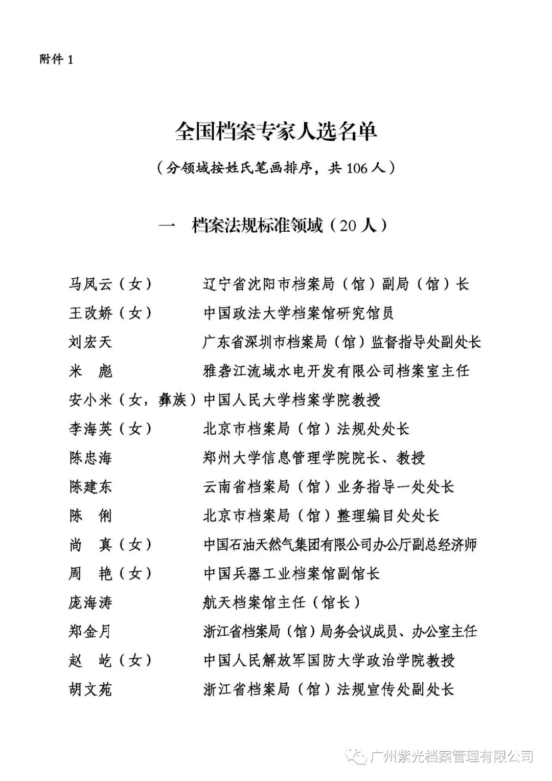 1. 全国档案专家人选名单